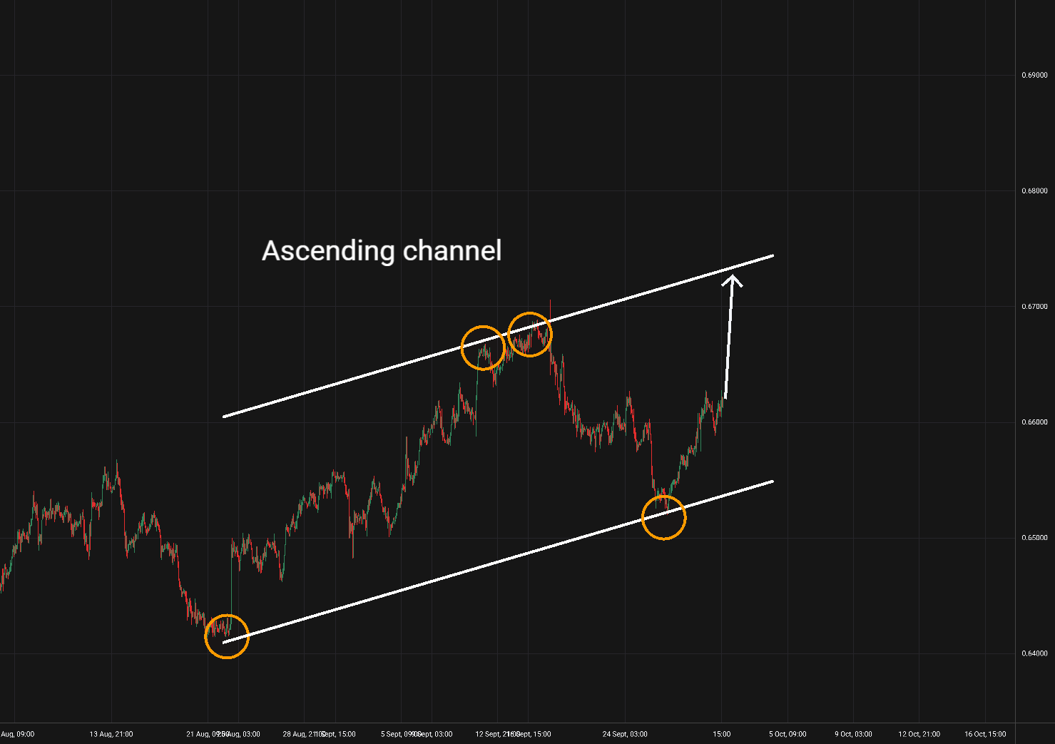 AUD/USD: Tento měnový pár je na 1hodinovém grafu v rostoucím trendovém kanálu, který platí po čtyřech odrazech již od 22. srpna.