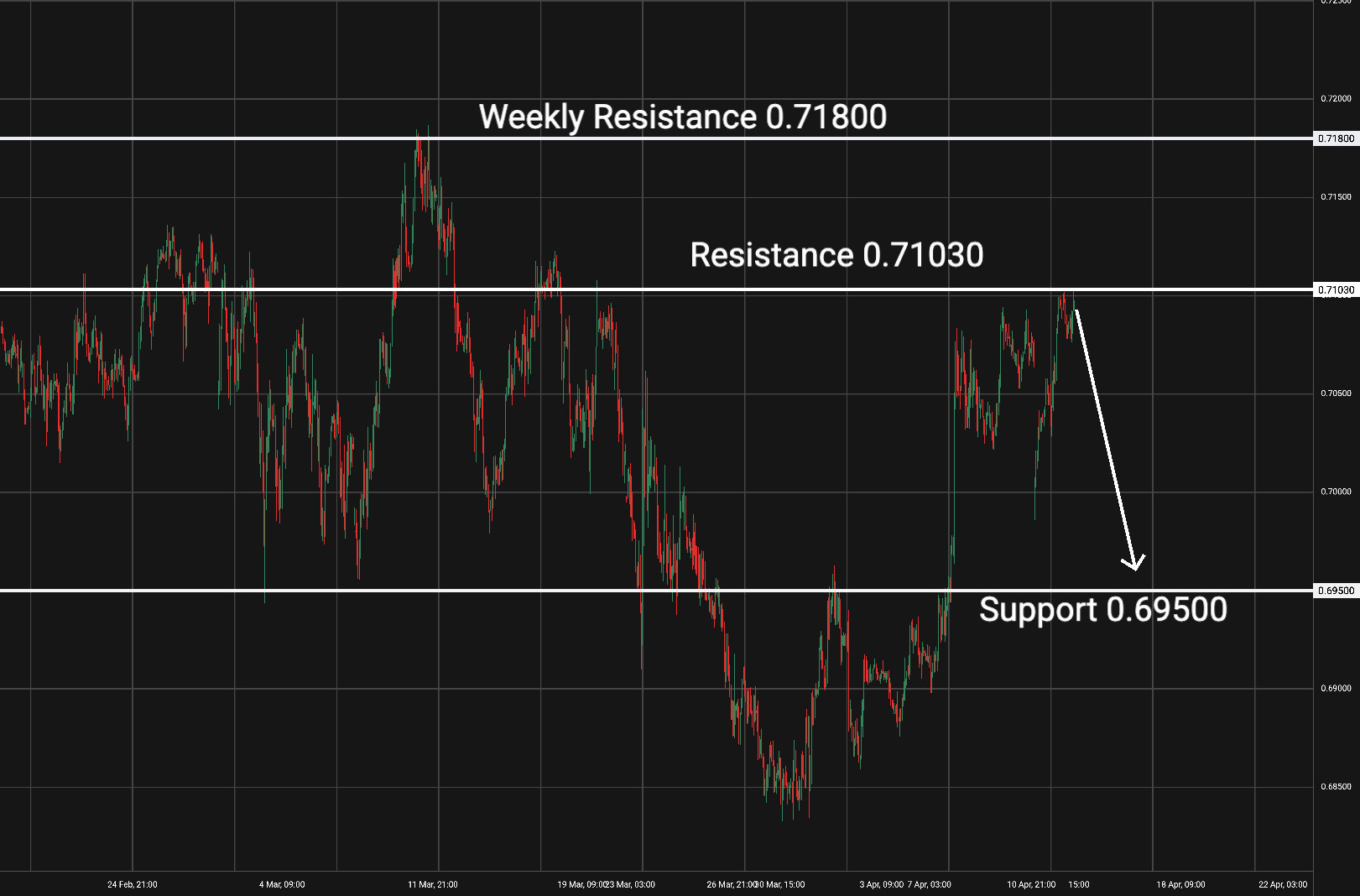 AUD/USD: Tento měnový pár je na 1hodinovém grafu v klesajícím trendovém kanálu, který platí po pěti odrazech již od 8. března. -