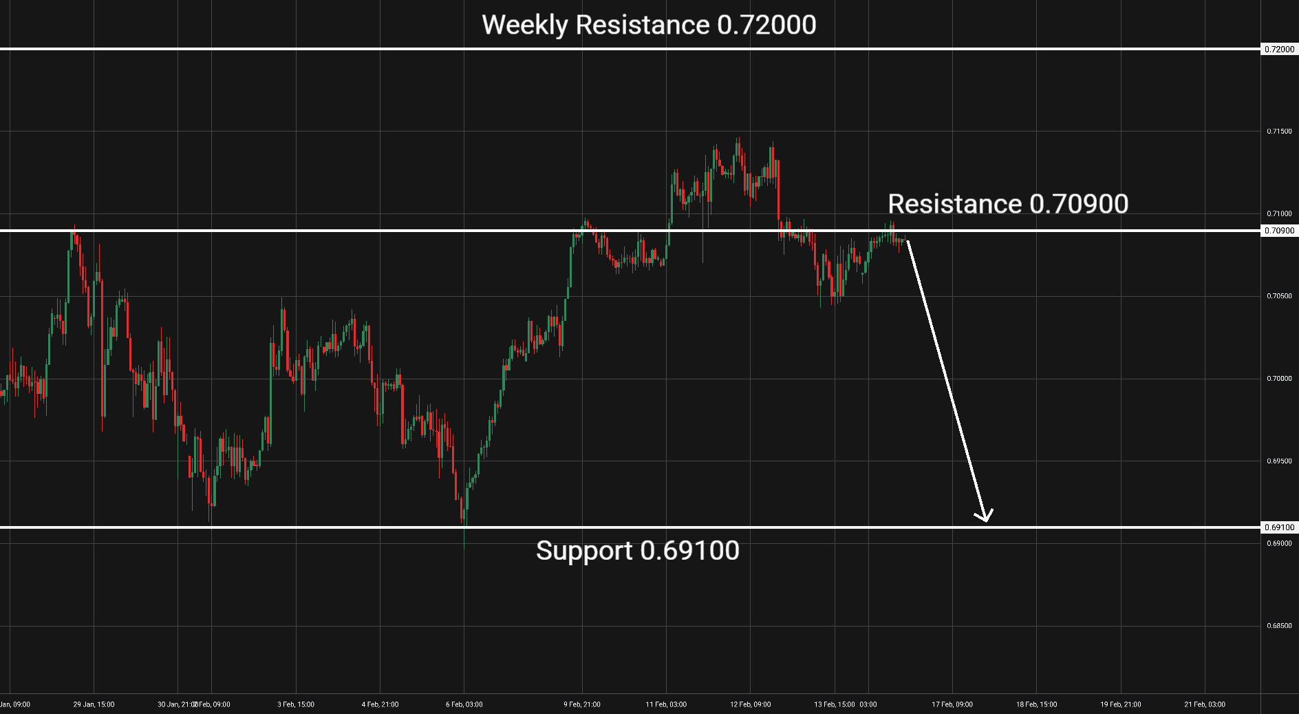 Swingové obchodování AUD/USD 16.2.2026