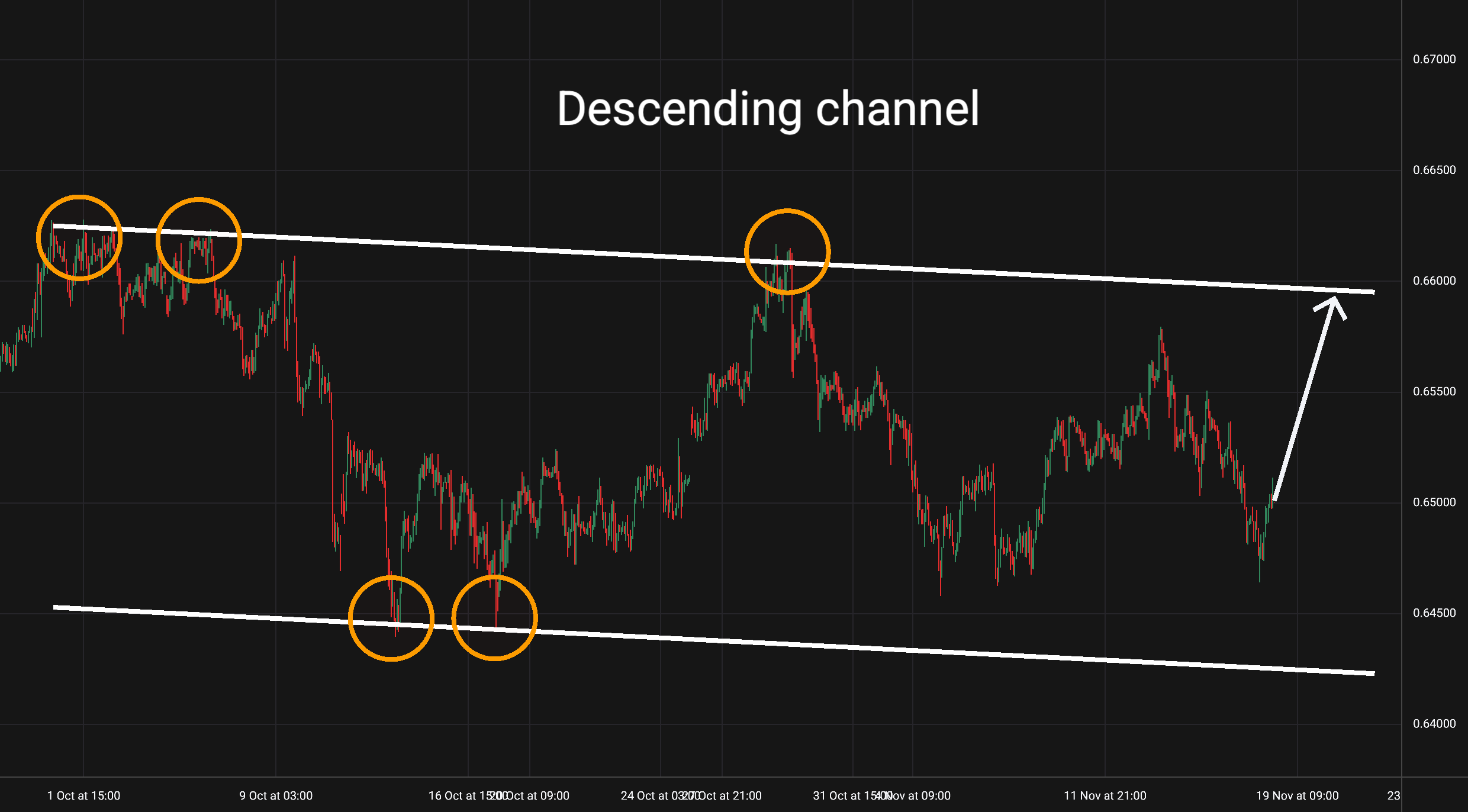 AUD/USD: Tento měnový pár je na 1hodinovém grafu v rostoucím trendovém kanálu, který platí po čtyřech odrazech již od začátku října. -
