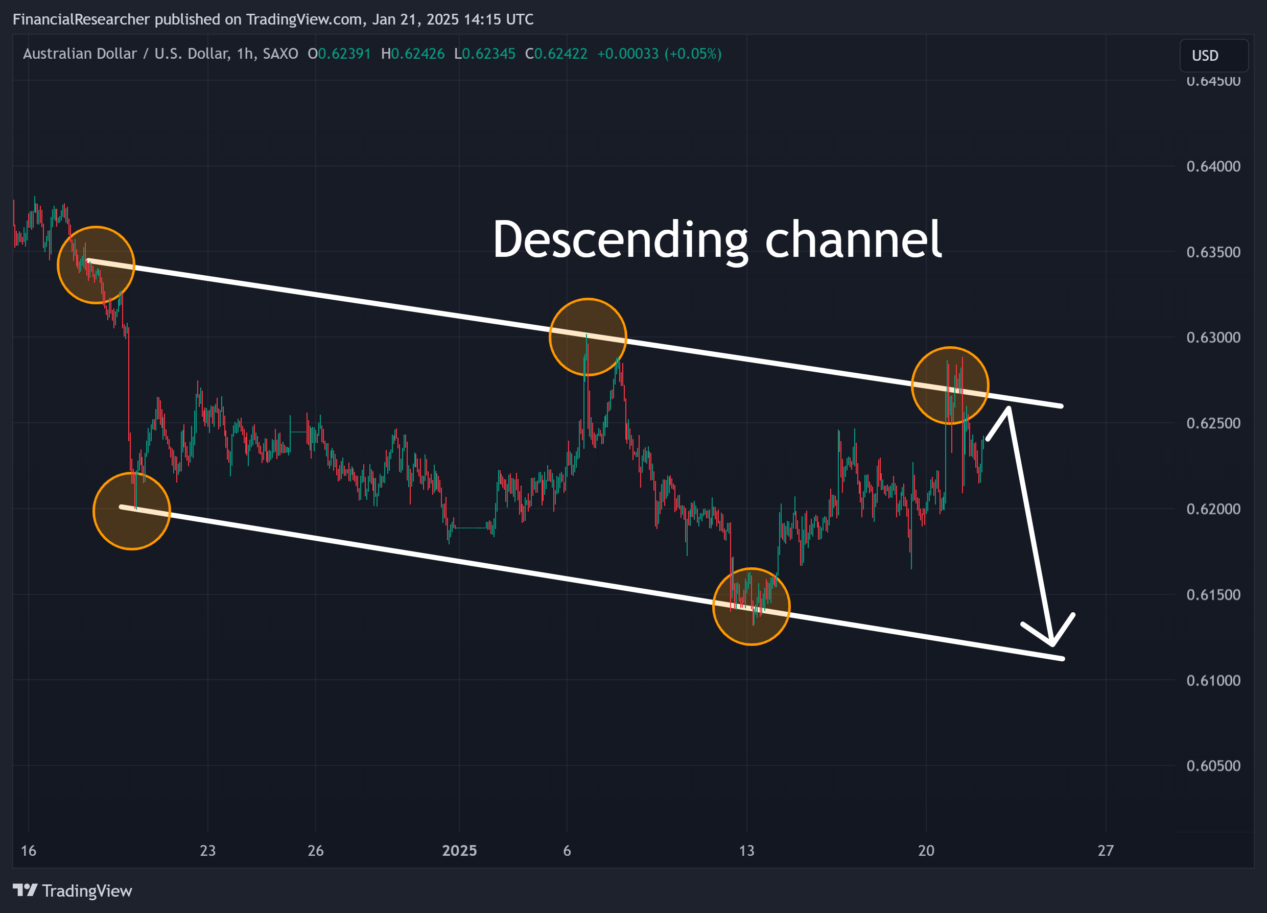 AUD/USD: Tento měnový pár je na 1hodinovém grafu v klesajícím trendovém kanálu, který platí po pěti odrazech již od 17. prosince.