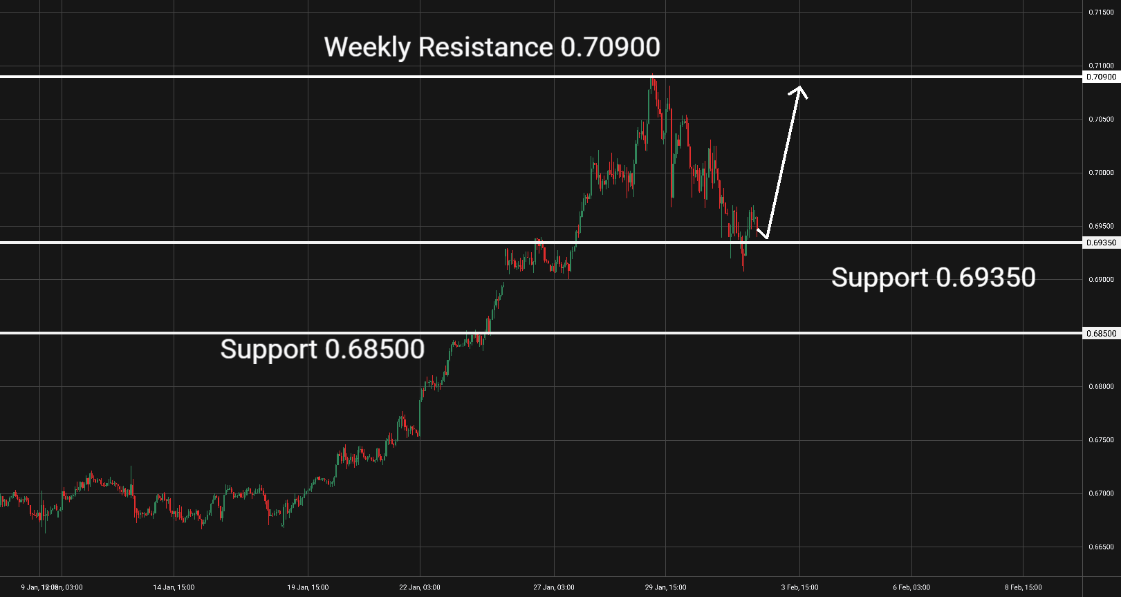 AUD/USD: Tento měnový pár je na 1hodinovém grafu v klesajícím trendu několik hodin. Support je na hladině 0,6935 a 0,6850. V případě odrazu od supportu bychom mohli uvažovat o long pozici s cílem u nejbližší rezistence. V případě jasného proražení supportu bychom mohli uvažovat o short pozici. Rezistence je na hladině 0,7090. Blížící se fundamentální zprávy (PMI v USA) by mohly ovlivnit vývoj tohoto měnového páru.