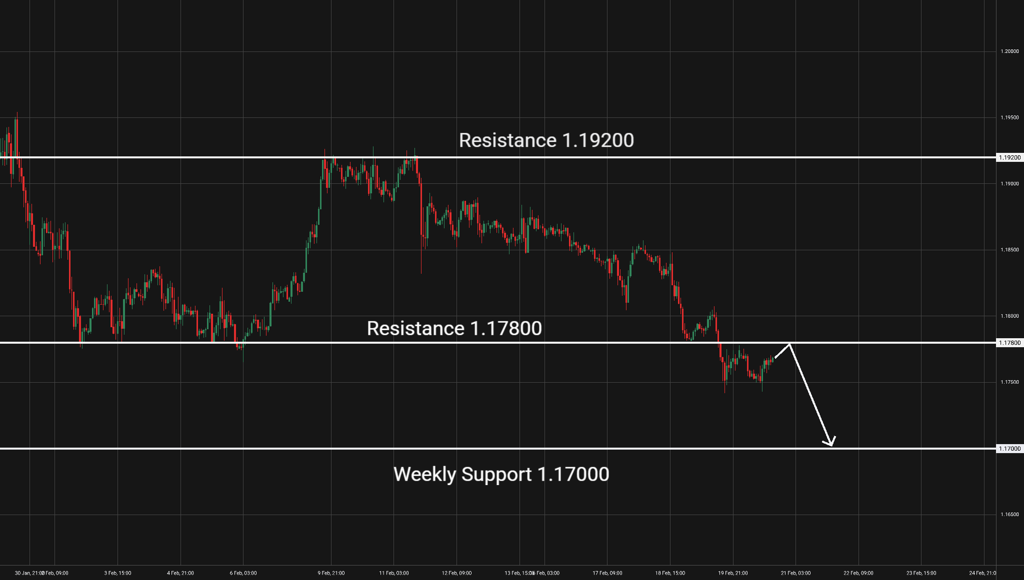Dokud se měnový pár EUR/USD bude obchodovat nad supportem 1,1744 - 1,1712, tak můžeme očekávat růst směrem k hladině rezistence 1,1910. -