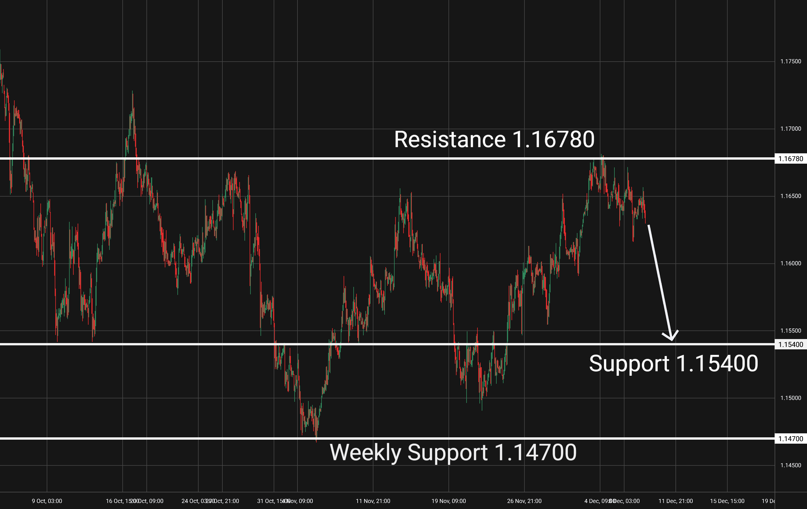 EUR/USD: Tento měnový pár je na 1hodinovém grafu v klesajícím trendu. Support je na hladině 1,1540 a 1,1470. Rezistence je na hladině 1,1678. Nyní bychom mohli uvažovat o short pozici se Stop-Lossem nad předchozím maximem. Blížící se fundamentální zprávy (nová pracovní místa JOLTS) by mohly ovlivnit vývoj tohoto měnového páru.