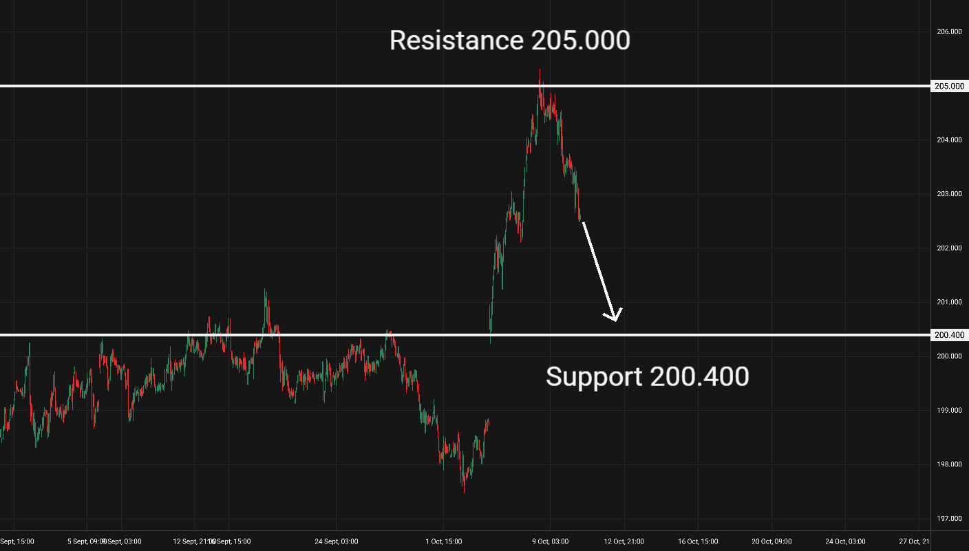 GBP/JPY: Tento měnový pár je na 1hodinovém grafu v rostoucím trendu. Support je na hladině 197,15 a 192,80. Rezistence je na hladině 200,50. V případě odrazu od rezistence bychom mohli uvažovat o short pozici s cílem u nejbližšího supportu. V případě jasného proražení rezistence bychom mohli uvažovat o long pozici. Blížící se fundamentální zprávy by neměly ovlivnit vývoj tohoto měnového páru. -