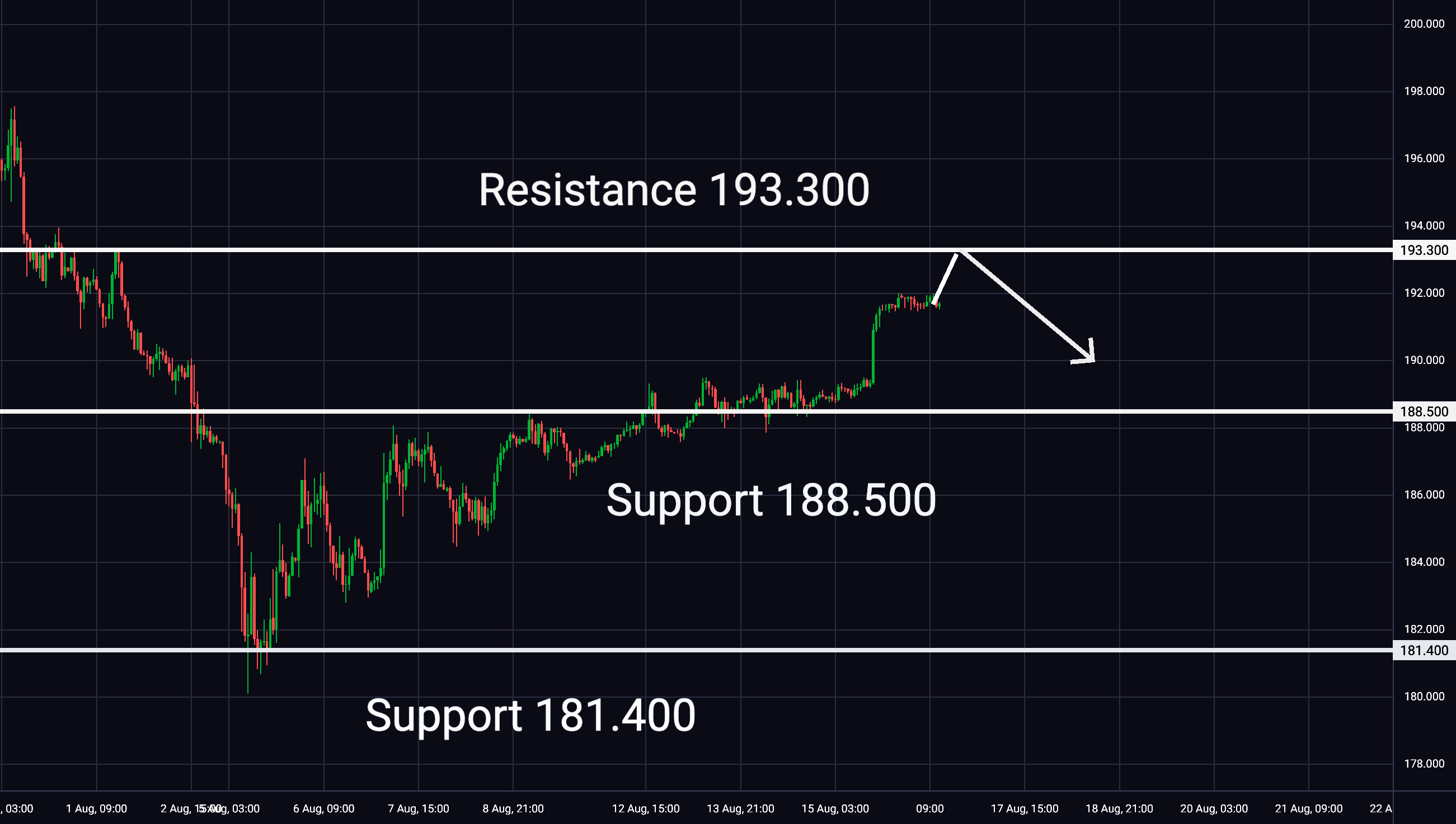 GBP/JPY: Tento měnový pár je na 1hodinovém grafu v rostoucím trendu a dostal se k rezistenci 190,10.