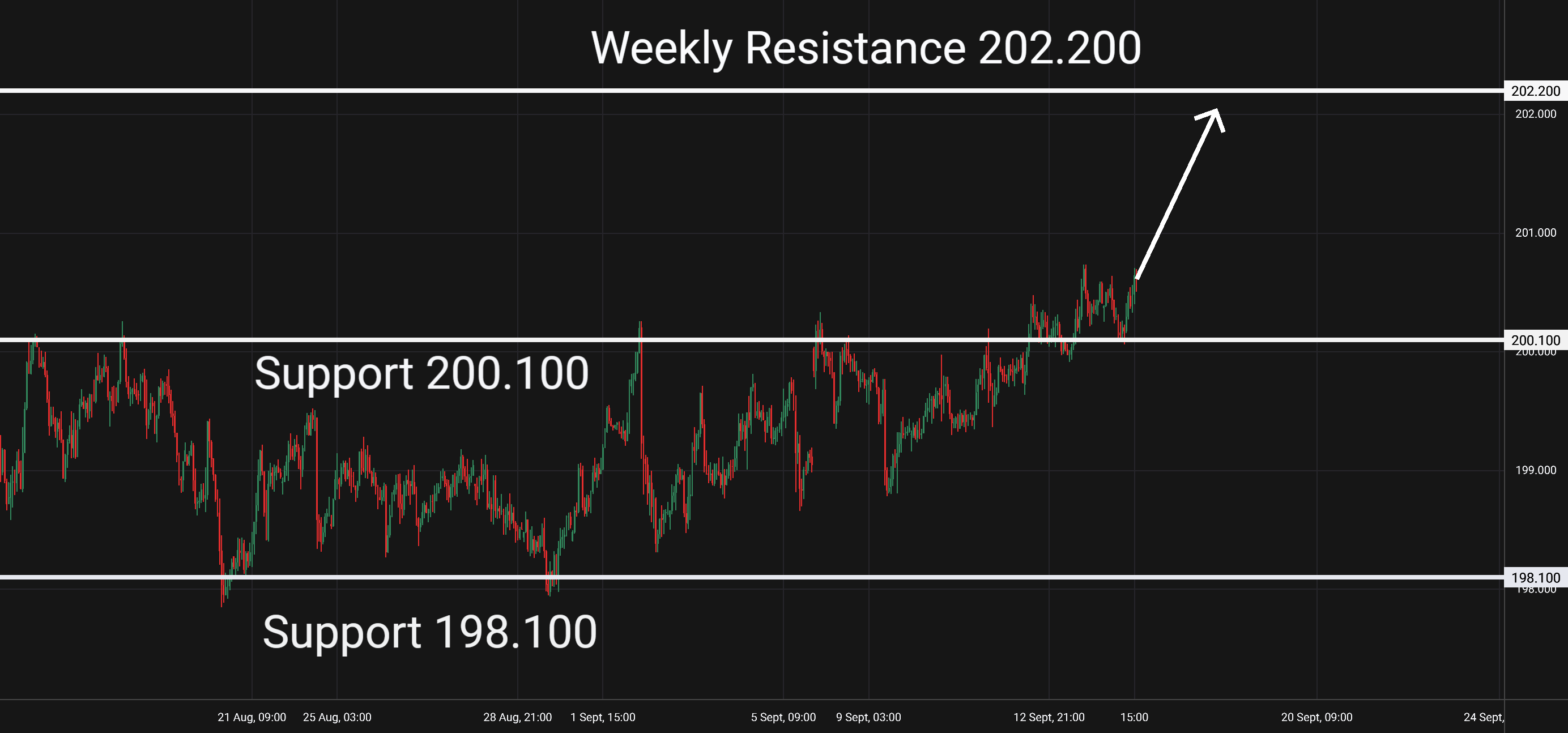 GBP/JPY: Tento měnový pár je na 1hodinovém grafu v rostoucím trendu. Support je na hladině 200,10 a 198,10. Nyní bychom mohli uvažovat o long pozici se Stop-Lossem pod předchozím minimem. Rezistence je na hladině 202,20. Blížící se fundamentální zprávy by neměly ovlivnit vývoj tohoto měnového páru.