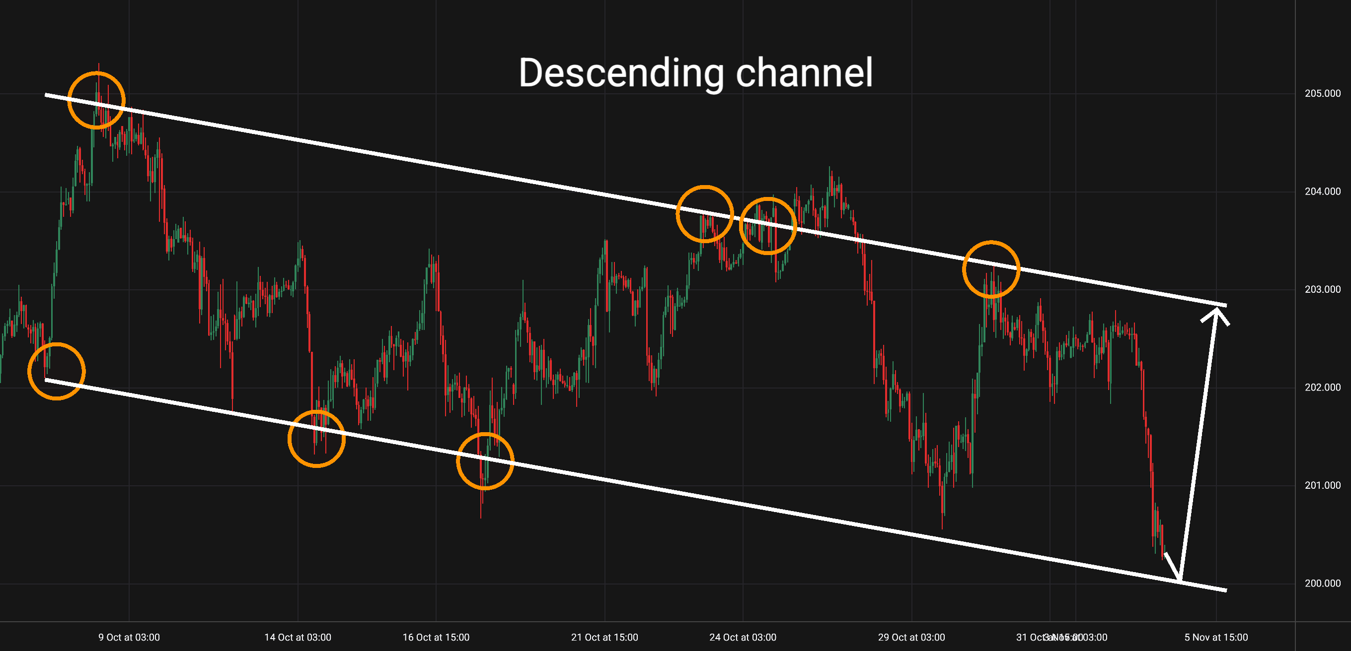 Možný scénář: Nyní bychom mohli počkat na odraz od spodní linie kanálu a pak uvažovat o long pozici s cílem u horní linie tohoto kanálu.