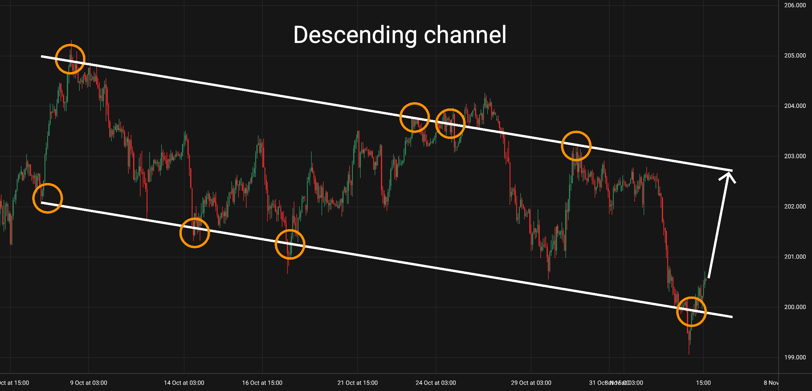 Aktuální situace: Cena směřuje k horní linii trendového kanálu.