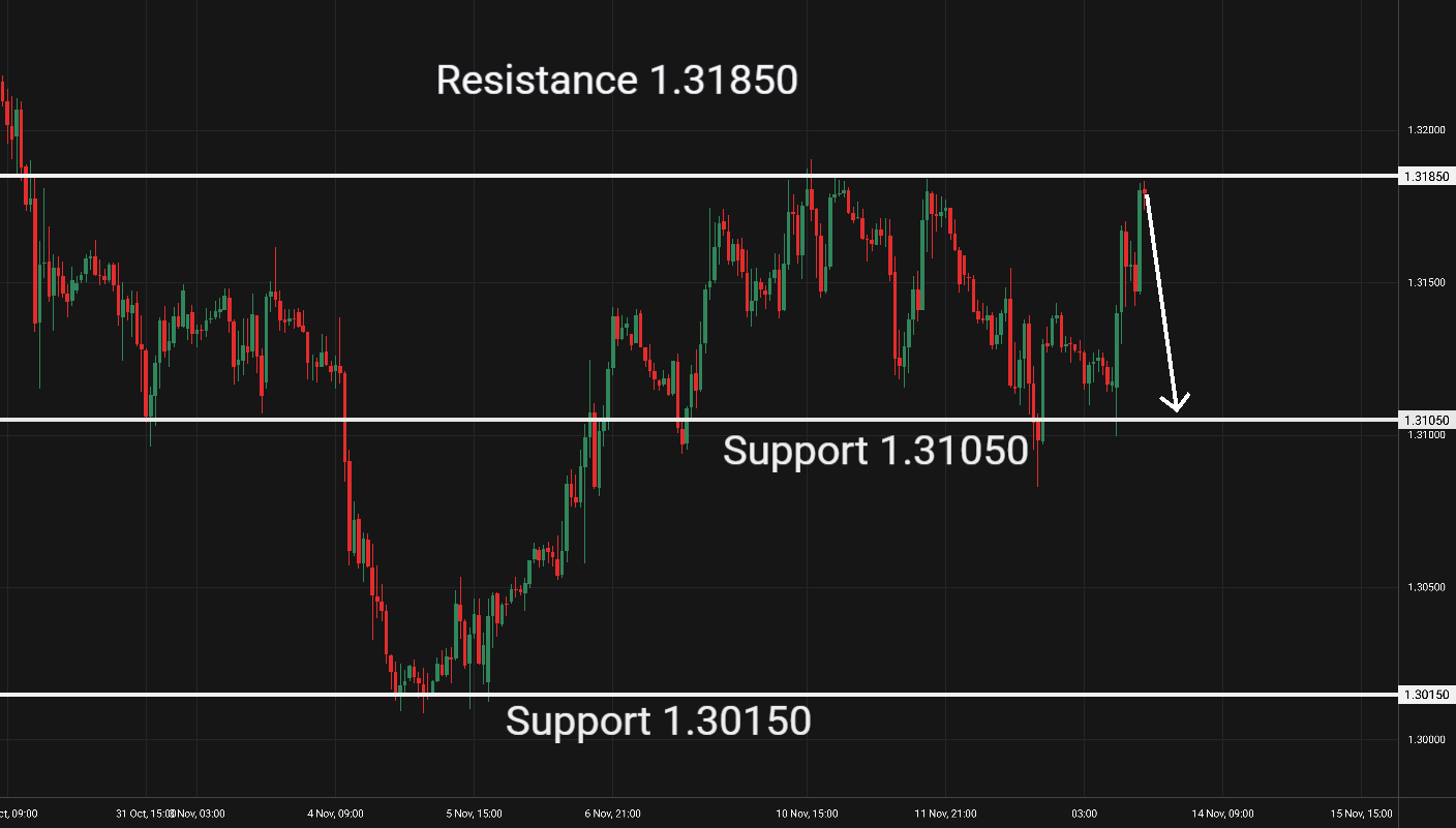 Měnový pár GBP/USD se obchoduje v bočním trendu mezi supportem 1,3068 a rezistencí 1,3285. V případě překonání supportu 1,3068 můžeme očekávat pokles směrem k hladině supportu 1,2932. -