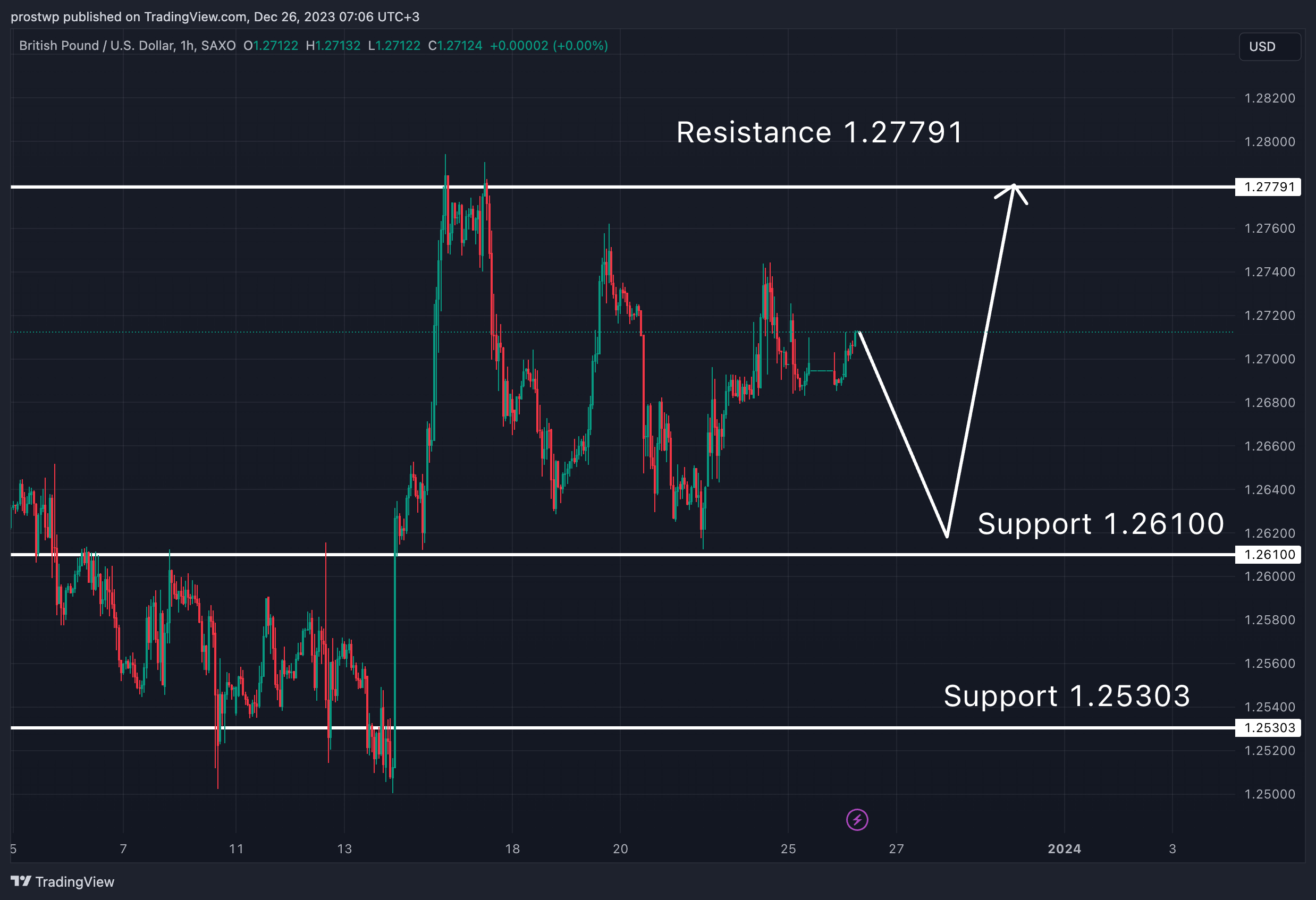 GBP/USD: Tento měnový pár je na 1hodinovém grafu v rostoucím trendu. Support je na hladině 1,2575. Rezistence je na hladině 1,2680 a 1,2800. V případě odrazu od rezistence bychom mohli uvažovat o short pozici s cílem u nejbližšího supportu. V případě jasného proražení rezistence bychom mohli uvažovat o long pozici. Blížící se fundamentální zprávy by neměly ovlivnit vývoj tohoto měnového páru. -