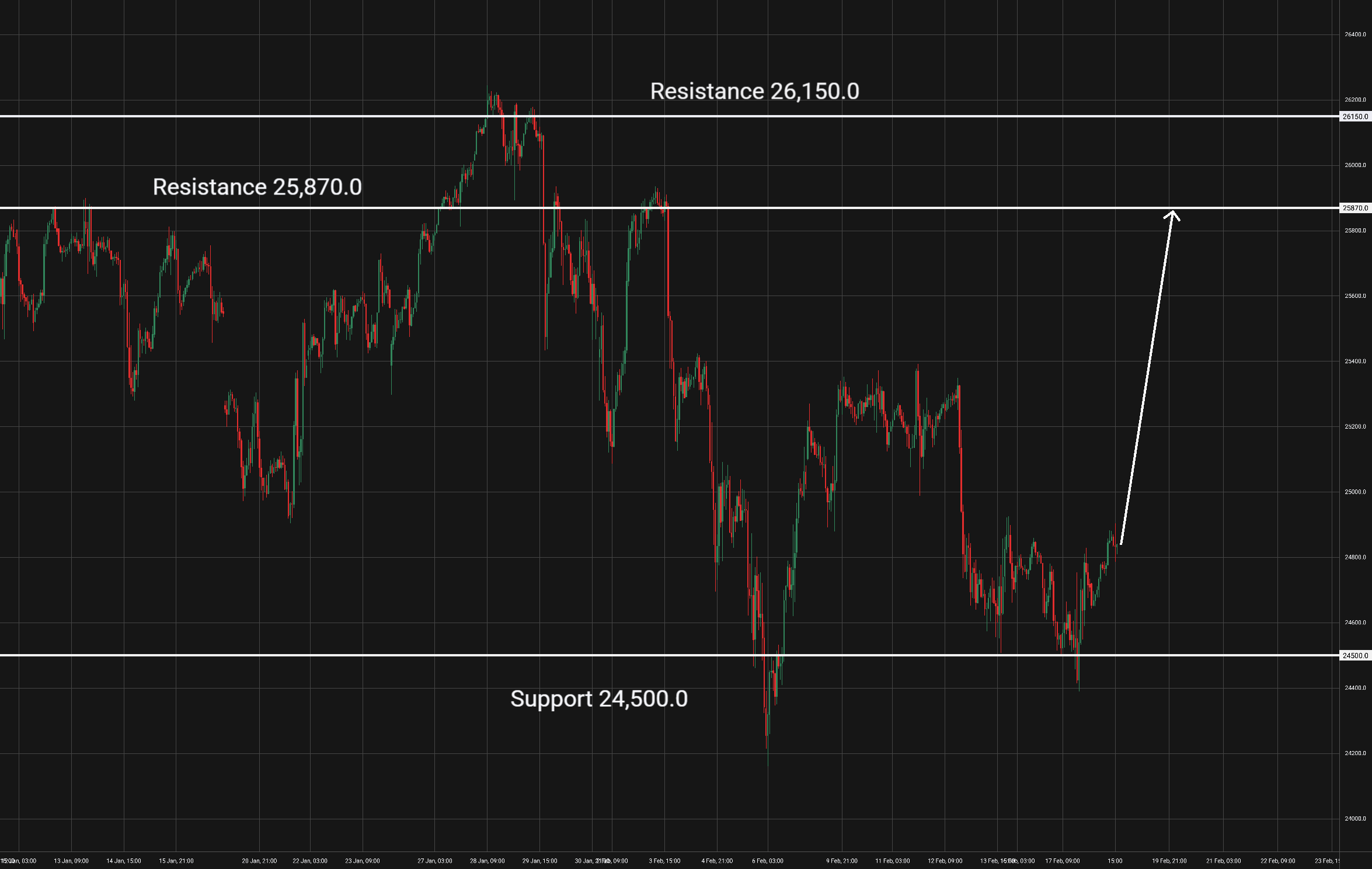 Nasdaq: Tento akciový index je na 1hodinovém grafu v rostoucím trendu několik hodin. Support je na hladině 24400. Rezistence je na hladině 25870 a 26250. Nyní bychom mohli uvažovat o long pozici se Stop-Lossem pod předchozím minimem. Blížící se fundamentální zprávy (spotřebitelská důvěra v USA) by mohly ovlivnit vývoj tohoto trhu. Někteří obchodníci mohou v pátek uzavírat své pozice, což by mohlo dostat tento trh pod tlak. -