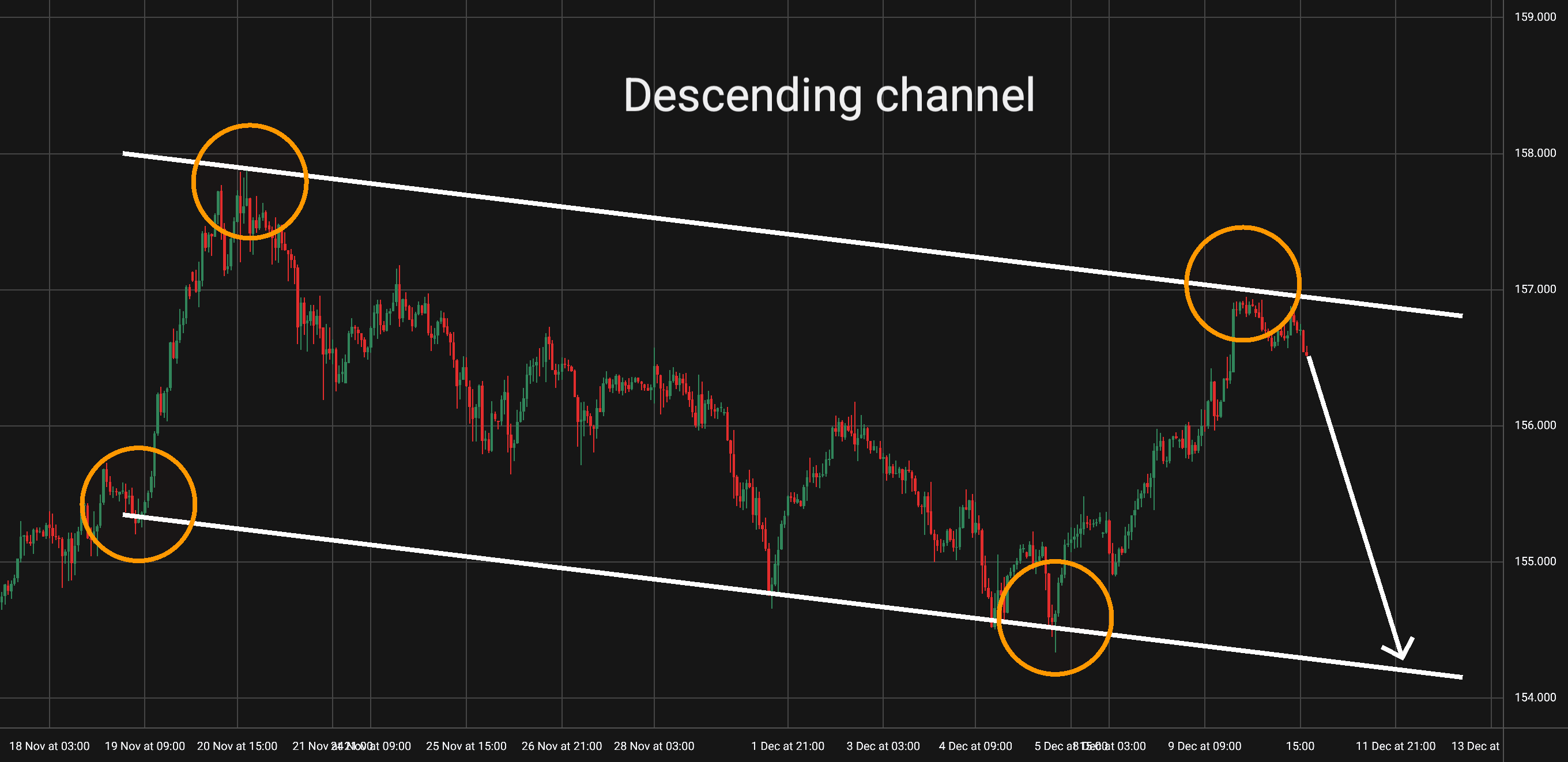 USD/JPY: Tento měnový pár je na 1hodinovém grafu v kleajícím trendovém kanálu, který platí po čtyřech odrazech již od 19. listopadu.