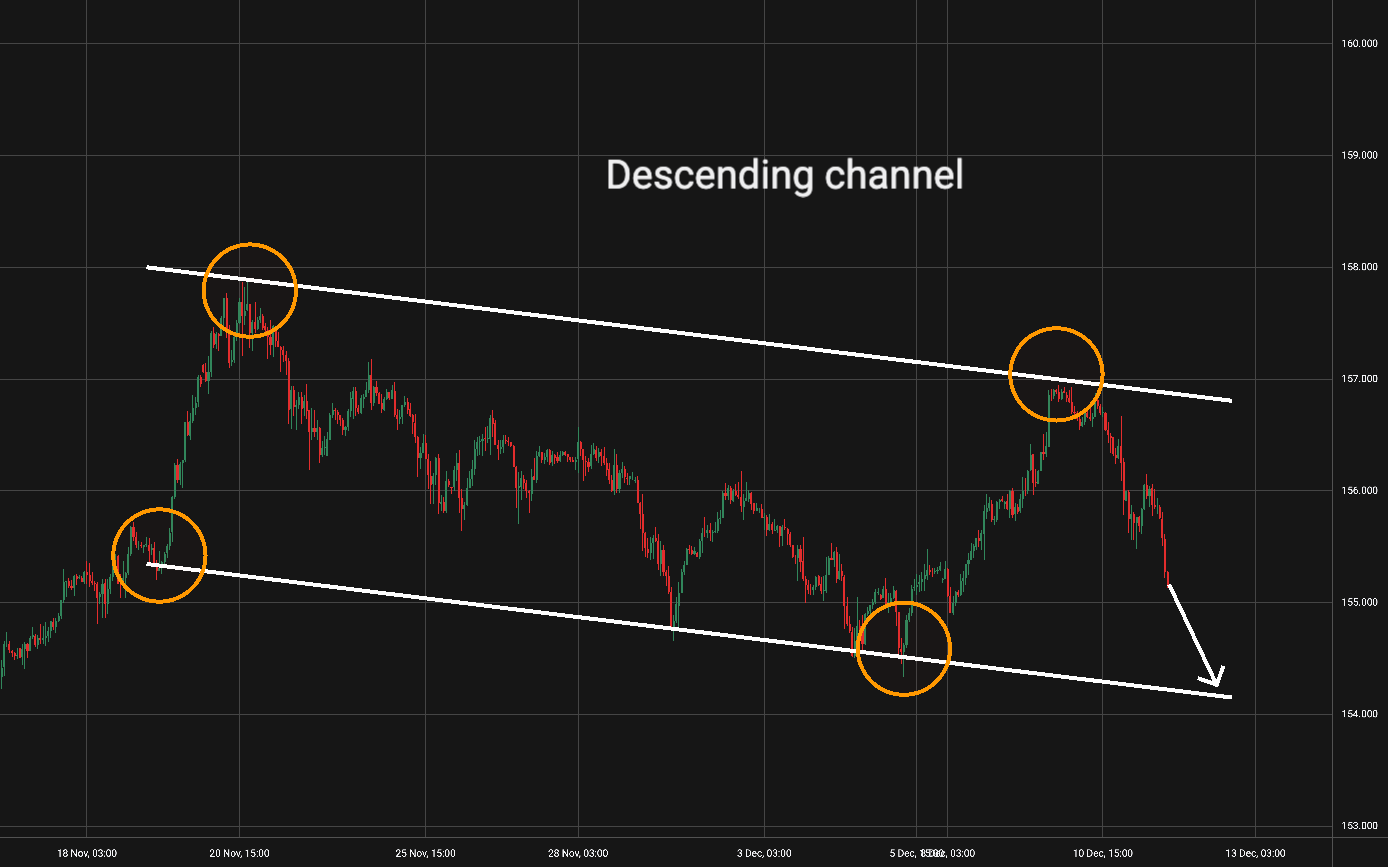 USD/JPY: Tento měnový pár je na 1hodinovém grafu v kleajícím trendovém kanálu, který platí po čtyřech odrazech již od 19. listopadu. -