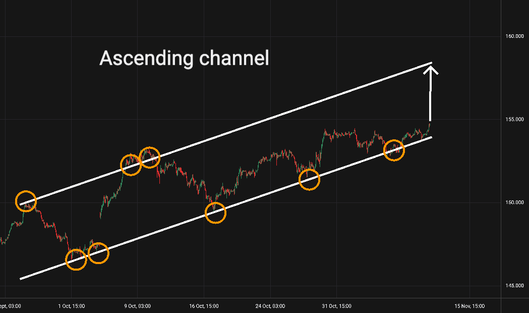 USD/JPY: Tento měnový pár je na 1hodinovém grafu v rostoucím trendovém kanálu, který platí po šesti odrazech již od 1. října. -