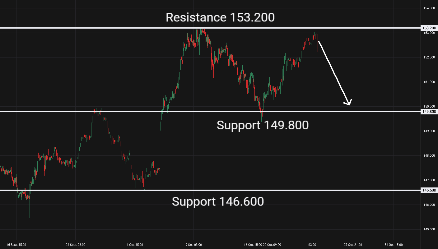 USD/JPY: Tento měnový pár je na 1hodinovém grafu v klesajícím trendu několik hodin. Support je na hladině 149,80 a 146,60. Rezistence je na hladině 153,20. Nyní bychom mohli uvažovat o short pozici se Stop-Lossem nad předchozím maximem. Blížící se fundamentální zprávy by neměly ovlivnit tento měnový pár. Někteří obchodníci mohou v pátek uzavírat své pozice, což by mohlo dostat tento trh pod tlak.