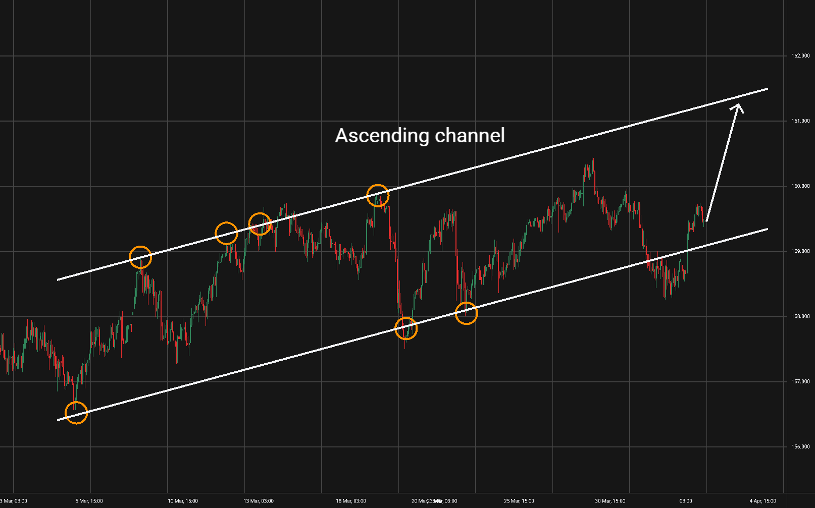 USD/JPY: Tento měnový pár je na 1hodinovém grafu v rostoucím trendovém kanálu, který platí po šesti odrazech již od 5. března. -