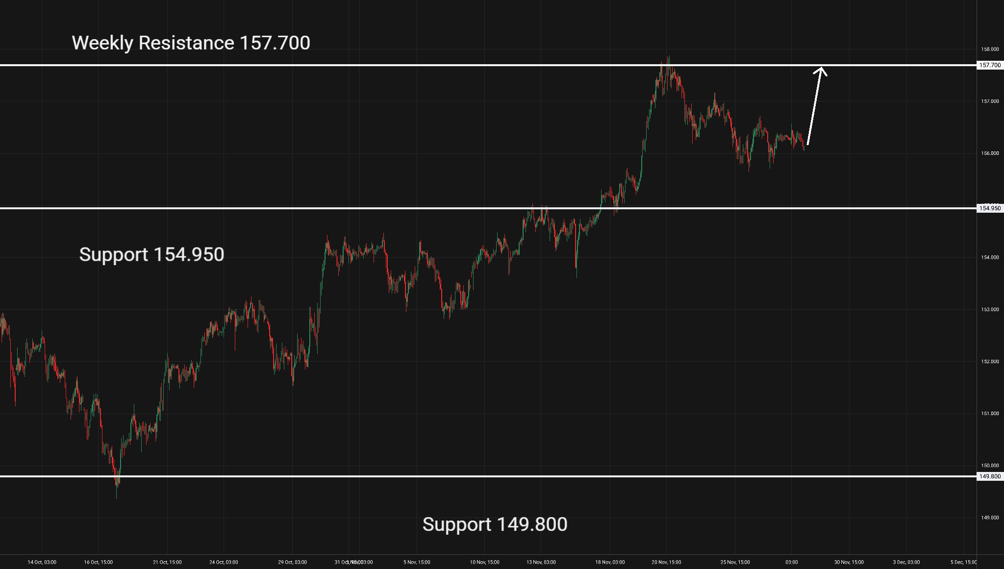 USD/JPY: Tento měnový pár je na 1hodinovém grafu v pohybu do strany. Support je na hladině 156,30, 155,00 a 152,80. V případě odrazu od supportu bychom mohli uvažovat o long pozici s cílem u nejbližší rezistence. V případě jasného proražení supportu bychom mohli uvažovat o short pozici. Rezistence je na hladině 158,00. Blížící se fundamentální zprávy by neměly ovlivnit tento měnový pár. -