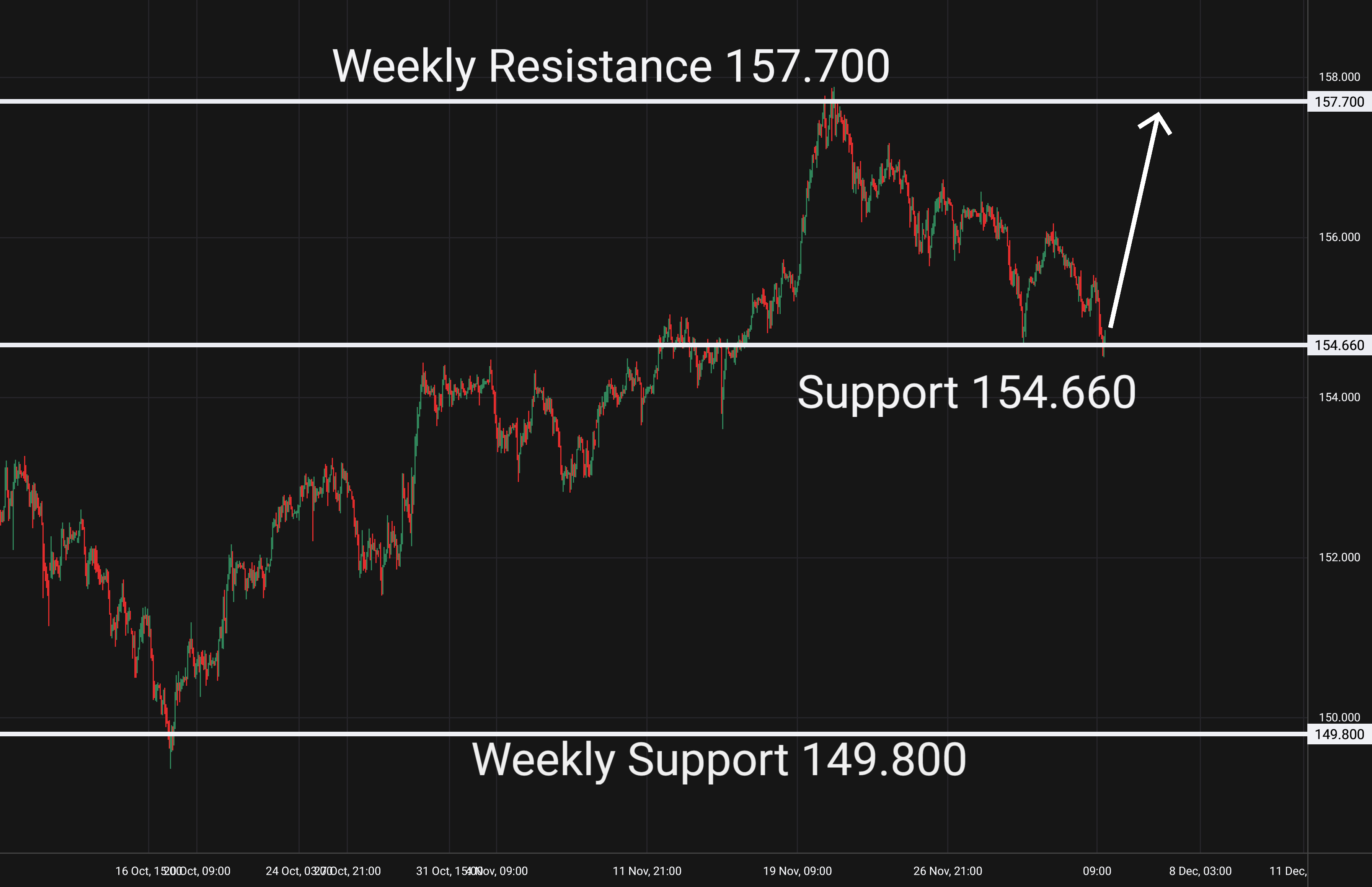 USD/JPY: Tento měnový pár je na 1hodinovém grafu v rostoucím trendu několik hodin. Support je na hladině 154,66 a 149,80. Rezistence je na hladině 157,70. Nyní bychom mohli uvažovat o long pozici se Stop-Lossem pod předchozím minimem. Blížící se fundamentální zprávy by neměly ovlivnit tento měnový pár.