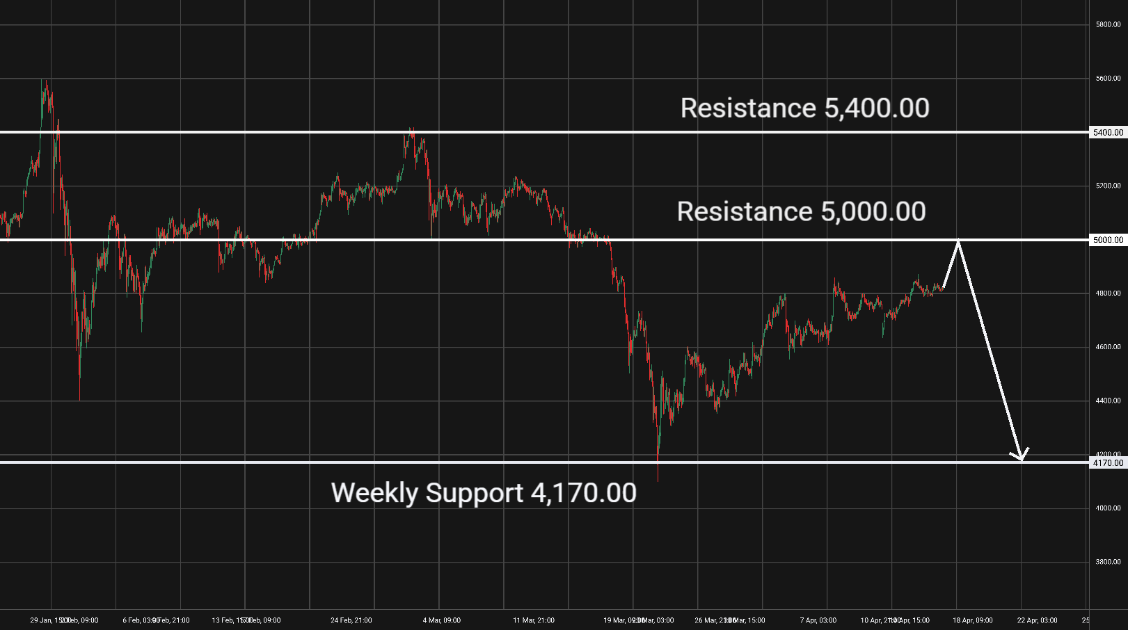 Zlato (XAU/USD): Tato komodita je na 1hodinovém grafu v rostoucím trendu. Support je na hladině 4170. Rezistence je na hladině 5000 a 5400. V případě odrazu od rezistence bychom mohli uvažovat o short pozici s cílem u nejbližšího supportu. V případě jasného prolomení rezistence bychom mohli uvažovat o long pozici. Blížící se fundamentální zprávy by neměly ovlivnit vývoj tohoto trhu.