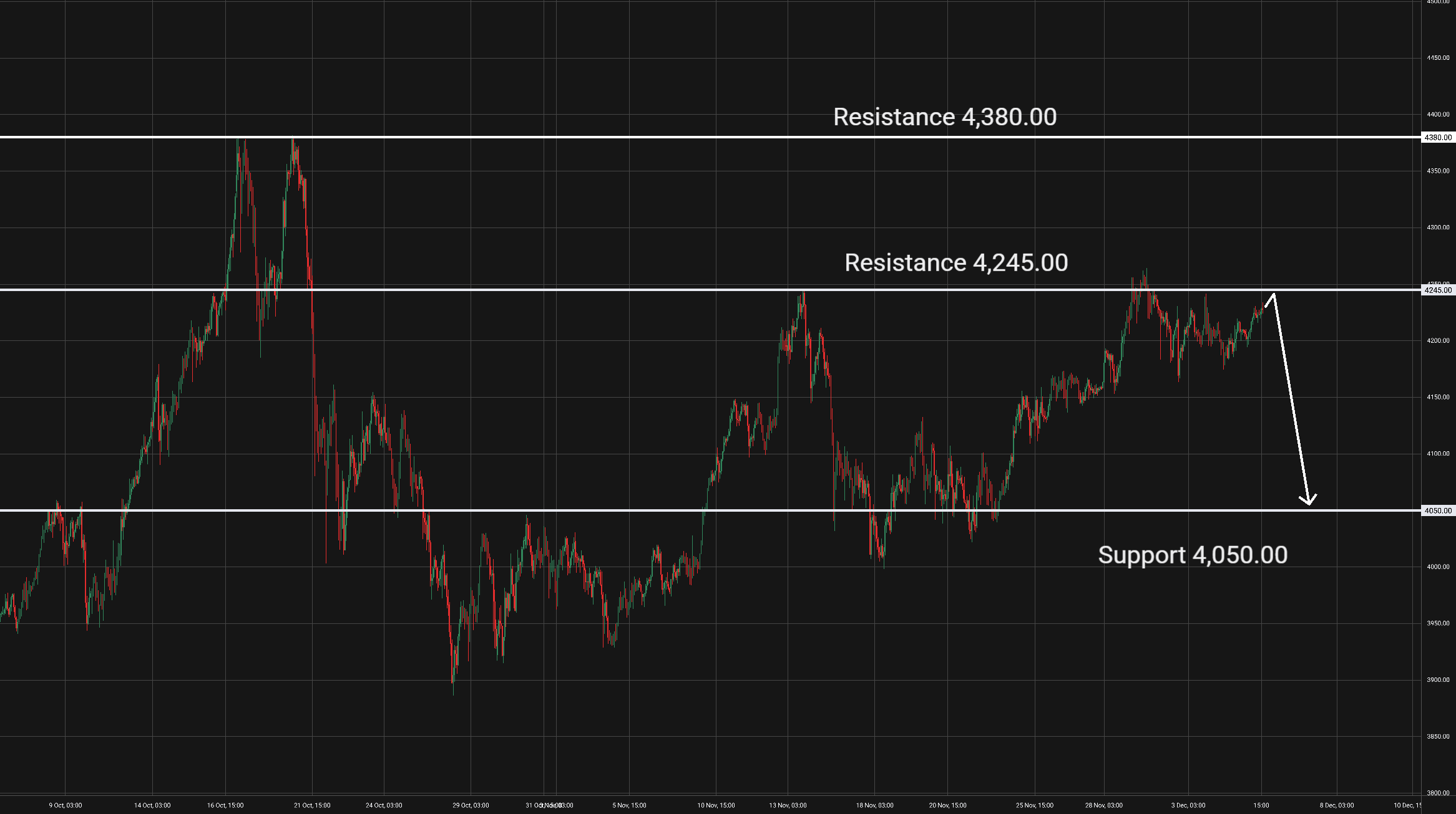 Zlato (XAU/USD): Tato komodita je na 1hodinovém grafu v rostoucím trendu několik hodin. Support je na hladině 4050. Rezistence je na hladině 4245 a 4380. V případě odrazu od rezistence bychom mohli uvažovat o short pozici s cílem u nejbližšího supportu. V případě jasného prolomení rezistence bychom mohli uvažovat o long pozici. Blížící se fundamentální zprávy (PCE index v USA) by mohly ovlivnit vývoj tohoto trhu. Někteří obchodníci mohou v pátek uzavírat své pozice, což by mohlo dostat tento trh pod tlak.