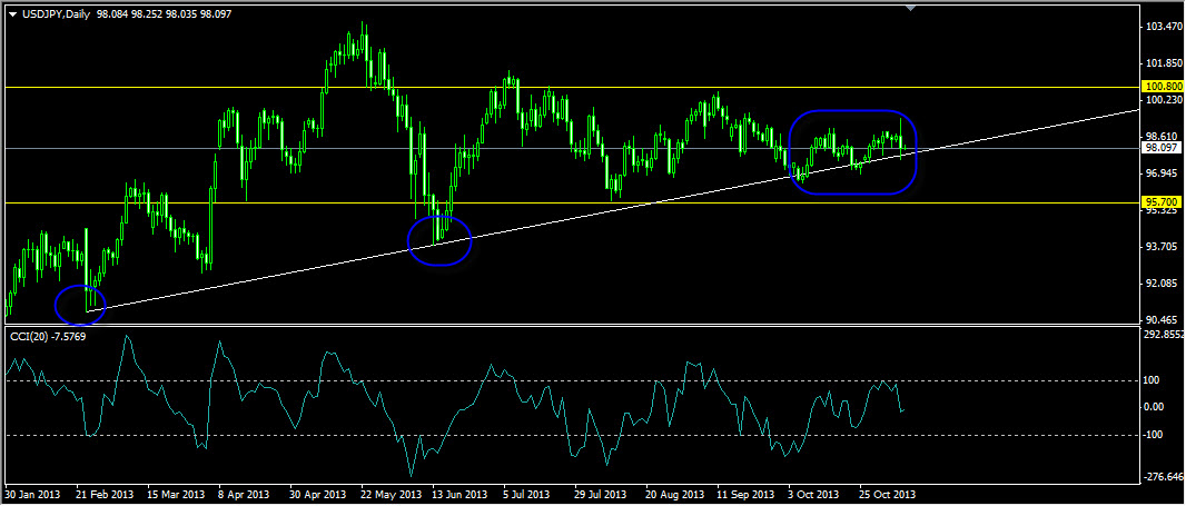Měnový pár USD/JPY v minulý týden klesal. Jasné prolomení zóny 98,00 by mohlo být prvním signálem... -