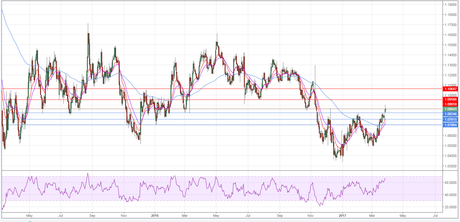 Intradenní technické nastavení pro měnový pár EUR/USD je aktuálně býčí. Další nastavení pro tento měnový pár je možné vidět v tabulce níže.