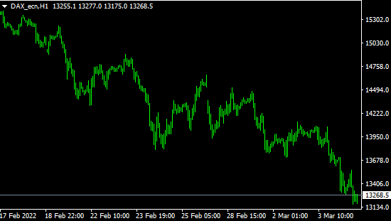Porovnání vývoje akciových indexů S&P 500 a DAX (1hodinový graf – H1):