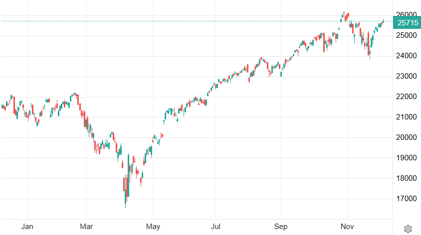 Vývoj akciového indexu Nasdaq (denní graf – D1):