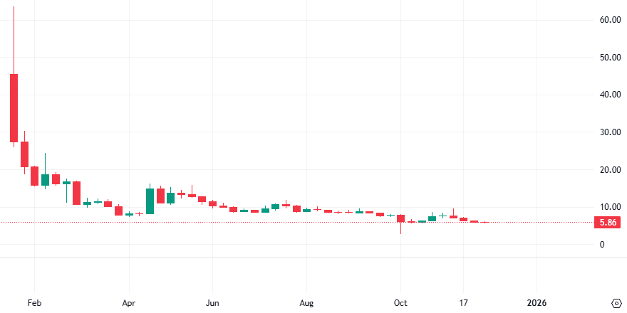 Vývoj ceny kryptoměny $TRUMP v USD (týdenní graf – W1):