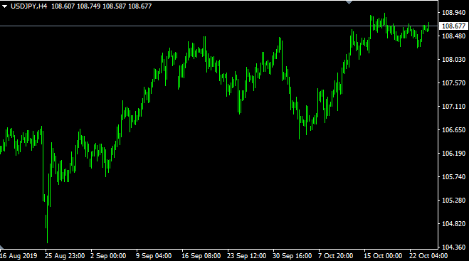 Vývoj měnového páru USD/JPY (4hodinový graf – H4):