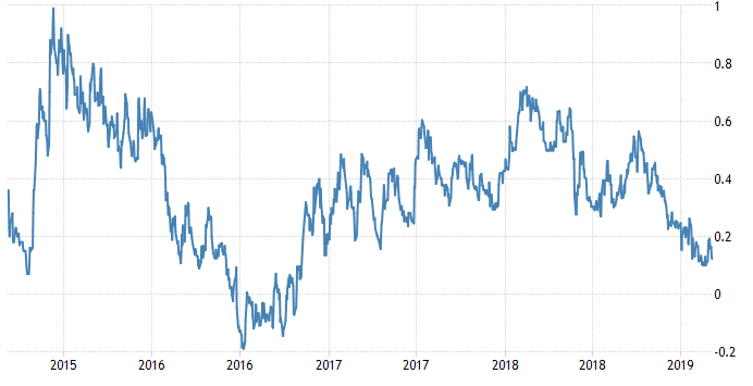Trh už přestává počítat s jakýmkoliv zvýšením úrokových sazeb na hodně dlouhou dobu, když se desetiletý německý dluhopis obchoduje s výnosem 0,10 % p.a. a jádrová inflace se i přes 10procentní meziroční oslabení eura nemůže odpoutat od 1procentního tempa směrem k cíli Evropské centrální banky (ECB). Vzhledem ke stagnaci klíčových ekonomik Německa a Itálie v posledních dvou čtvrtletích se letošní růst v eurozóně očekává výrazně slabší než v předchozích prognózách a v lepším případě bude začínat jedničkou, v tom horším se bude blížit recesi celá měnová unie.