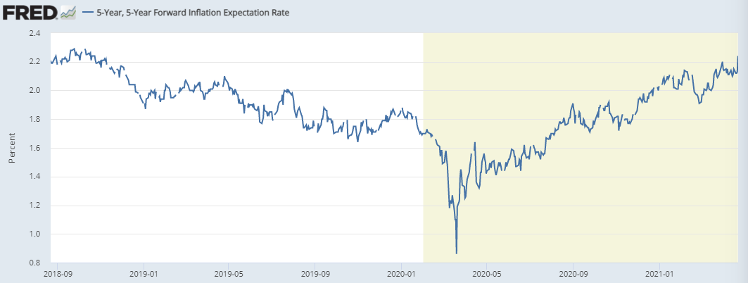 Vývoj amerických 5letých inflačních očekávání p.a.: