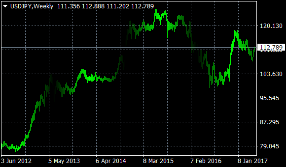 Vývoj měnového páru USD/JPY (týdenní graf – W1):