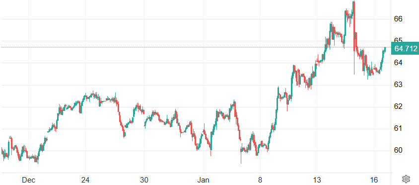 Vývoj ceny ropy Brent (hodinový graf – H1):