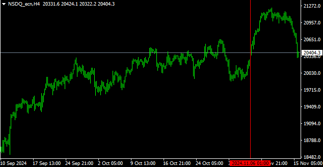 Vývoj akciového indexu Nasdaq (4hodinový graf – H4):