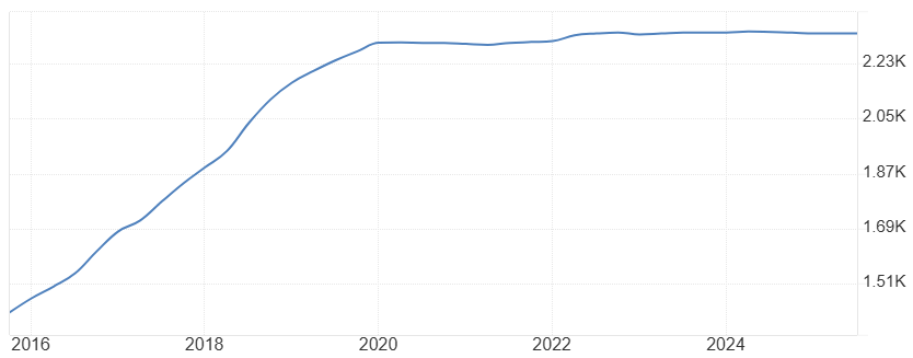 Jenže fond Kremlu vysychá, a proto začíná Bank of Russia prodávat své rezervy přímo na fyzickém trhu. Její rezervy přesahující 2300 tun jsou mezi centrálními bankami 5. největší na světě, nahromaděné především z doby před covidovou pandemií (viz graf). Po letošní rally má ruský zlatý poklad hodnotu 308 mld. USD. Předpokládaný deficit ruského státního rozpočtu na tento rok se pohybuje okolo 80 mld. USD (6,5 bln. RUB). Rozprodejem poloviny svých zlatých rezerv by tak Putin mohl financovat válečnou ekonomiku další téměř 2 roky.