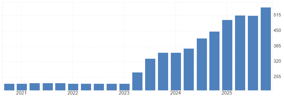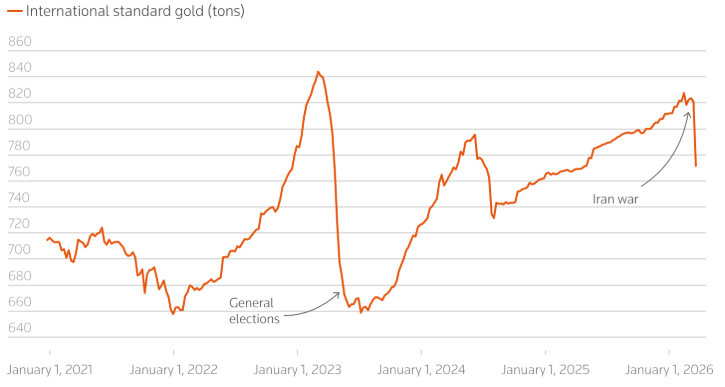 Proto Turecko sáhlo do svého zlatého pokladu a prodalo v polovině března během jediného týdne téměř 60 tun! To už je porce, která dokáže zahýbat celosvětovým trhem. Byť jen Česká národní banka, která shromažďuje zlato už několik let, má v bilanci celých 72 tun. A prodeje mohou pokračovat i nadále, pokud bude chtít turecká centrální banka držet kurz liry bez prudkého oslabení. Jak je vidět z grafu, v roce 2023 byla ochotna prodat celých 200 tun před vynucenou devalvací.
