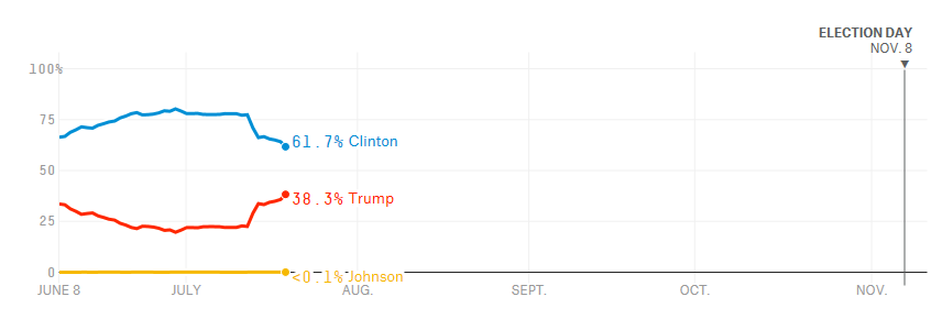 * Je třeba připomenout, že aktuální rally Donalda Trumpa v průzkumech je podpořená pořádáním republikánského sjezdu, který mu dává velký mediální prostor, a tento efekt může vyprchat při sjezdu Demokratů.