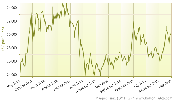 Vývoj ceny zlata v CZK za unci: