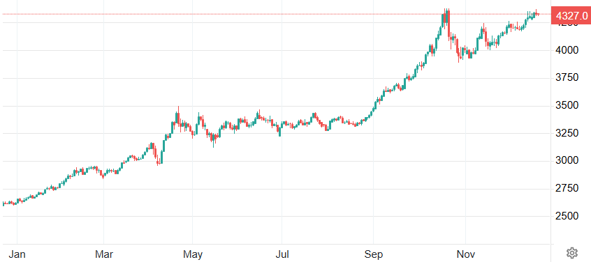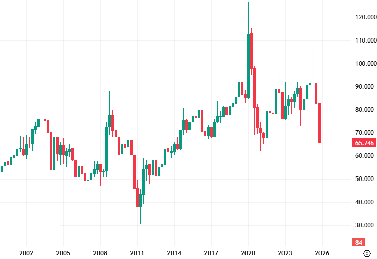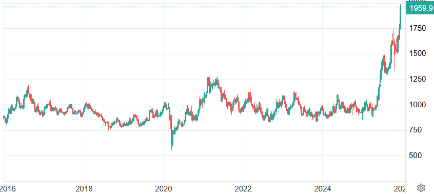 Zlato letos v USD prozatím zhodnotilo o 65 % a nachází se v blízkosti říjnového historického maxima. Poslední data o inflaci v USA ukazují na zvolnění meziročního růstu jádrových cen na 2,6 %, nejníže od března 2021. Tato data ale spíše pomohou zlatu k dalším ziskům, pokud budou pro americkou centrální banku (Fed) dostatečným argumentem pro další snižování úrokových sazeb z aktuálního rozmezí 3,50-3,75 % a pro slabší dolar. Na druhou stranu ohlášené prodeje fyzického zlata ruské centrální banky využívané k financování prohlubujícího se schodku rozpočtu Kremlu mohou působit na cenu zlata negativně.