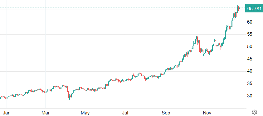 Platina byla několik let bez zájmu investorů, zejména kvůli jejímu hojnému využití v dieselových automobilech, jejichž výroba rapidně klesá. Měla tedy cenově co dohánět a i přes letošní silnou rally má stále prostor pro výrazný růst. Platina je cca 10x vzácnější než zlato a byly doby, kdy byla oproti zlatu trojnásobně drahá, dnes nestojí ani polovinu. V roce 2008 dosáhla na svoje historické maximum ve výši 2288 USD za unci a s aktuálním momentem má pro příští rok nakročeno k jeho překonání.