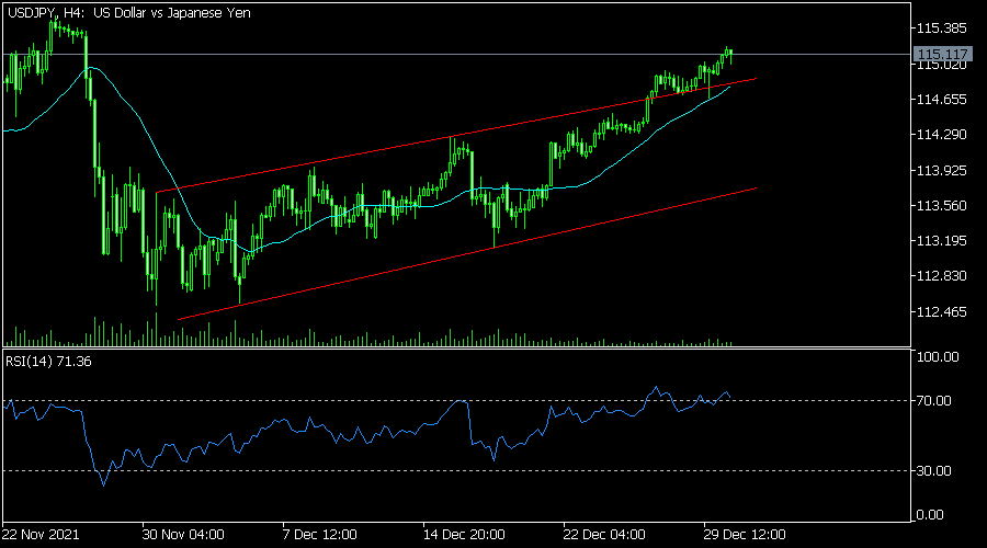 USD/JPY: Na 4hodinovém grafu cena stoupla až na 115,13, což je nejvyšší hladina od 25. listopadu. Po proražení horní linie rostoucího trendového kanálu je cena stabilní. Dostali jsme se nad denní SMA 25 a SMA 50. Indikátor RSI je v překoupené zóně. Nyní bychom mohli dále spíše růst.