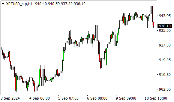 Vývoj ceny platiny (1hodinový graf - H1):