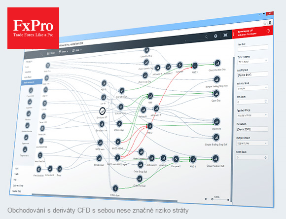 FxPro Quant je speciálně navržen tak, aby byl jednoduchý a uživatelsky přívětivý. Na rozdíl od jiných nástrojů na budování strategií, Quant promění váš obchodní styl v algoritmickou strategii bez použití kódovacího jazyka. Díky snadno použitelnému drag-and-drop rozhraní můžete přepojením technických indikátorů, matematických funkcí a logických operátorů vytvořit komplexní strategii jak pro platformu MT4 tak pro cTrader a plně automatizovat svoje obchodování. Díky řadě přizpůsobitelných šablon, Quant e-booku tak mohou formalizovat svůj obchodní styl i začátečníci.