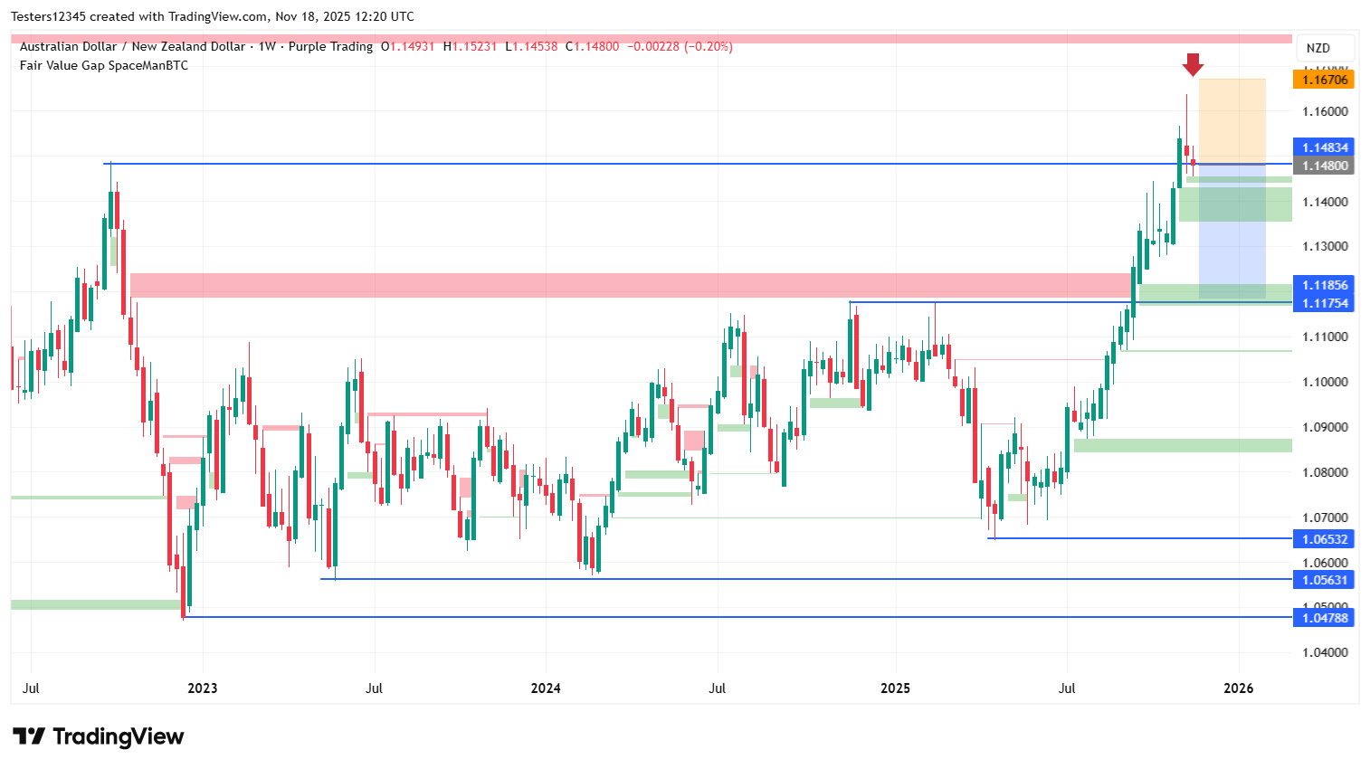 Obrázek č. 4: Měnový pár AUD/NZD na týdenním časovém rámci