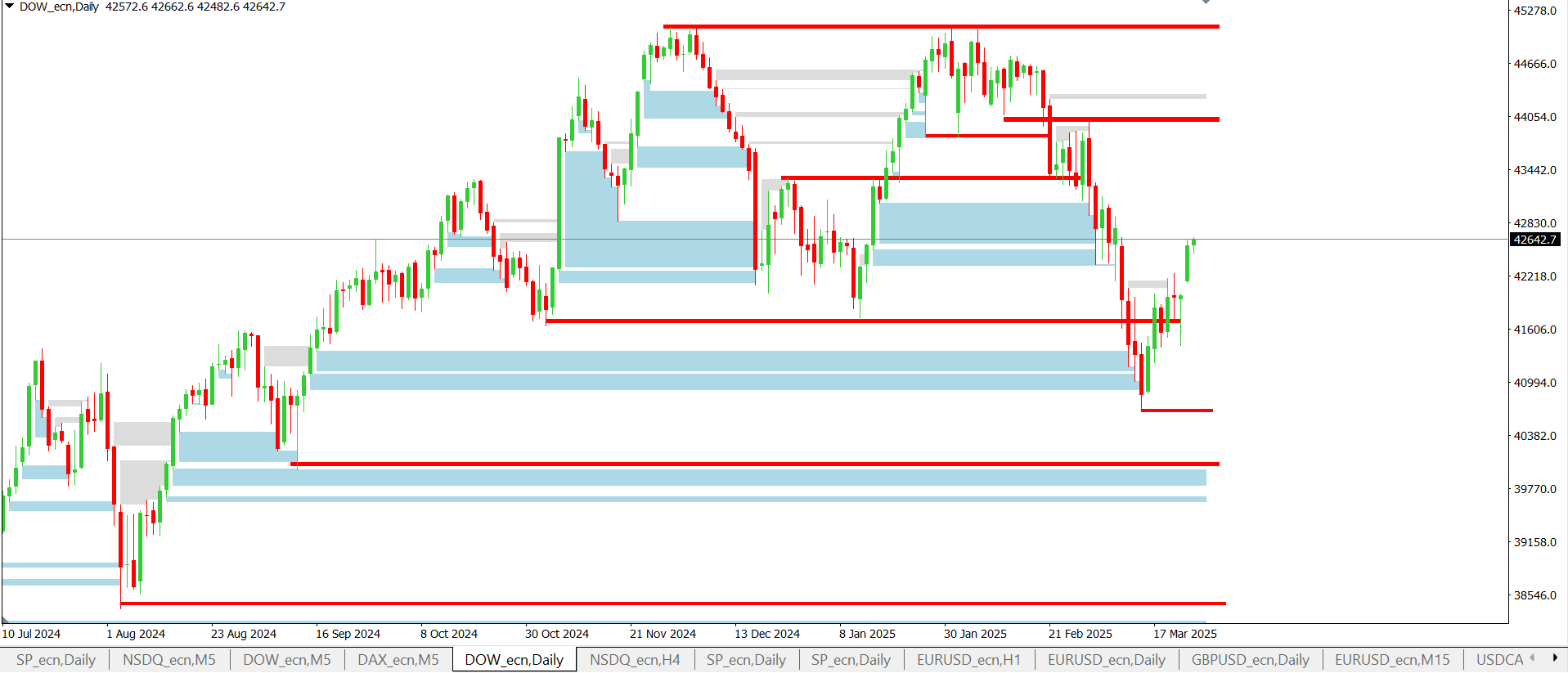 Na trzích stále panuje nejistota kolem cel a tarifů, které zavádí administrativa Donalda Trumpa. O víkendu se však objevila zpráva, že tarify by mohly být zaměřeny pouze na vybrané sektory. Oznámení o těchto clech by mělo proběhnout 2. 4. 2025. Trhy tuto zprávu vyhodnotily pozitivně a akciové indexy začaly silně posilovat.