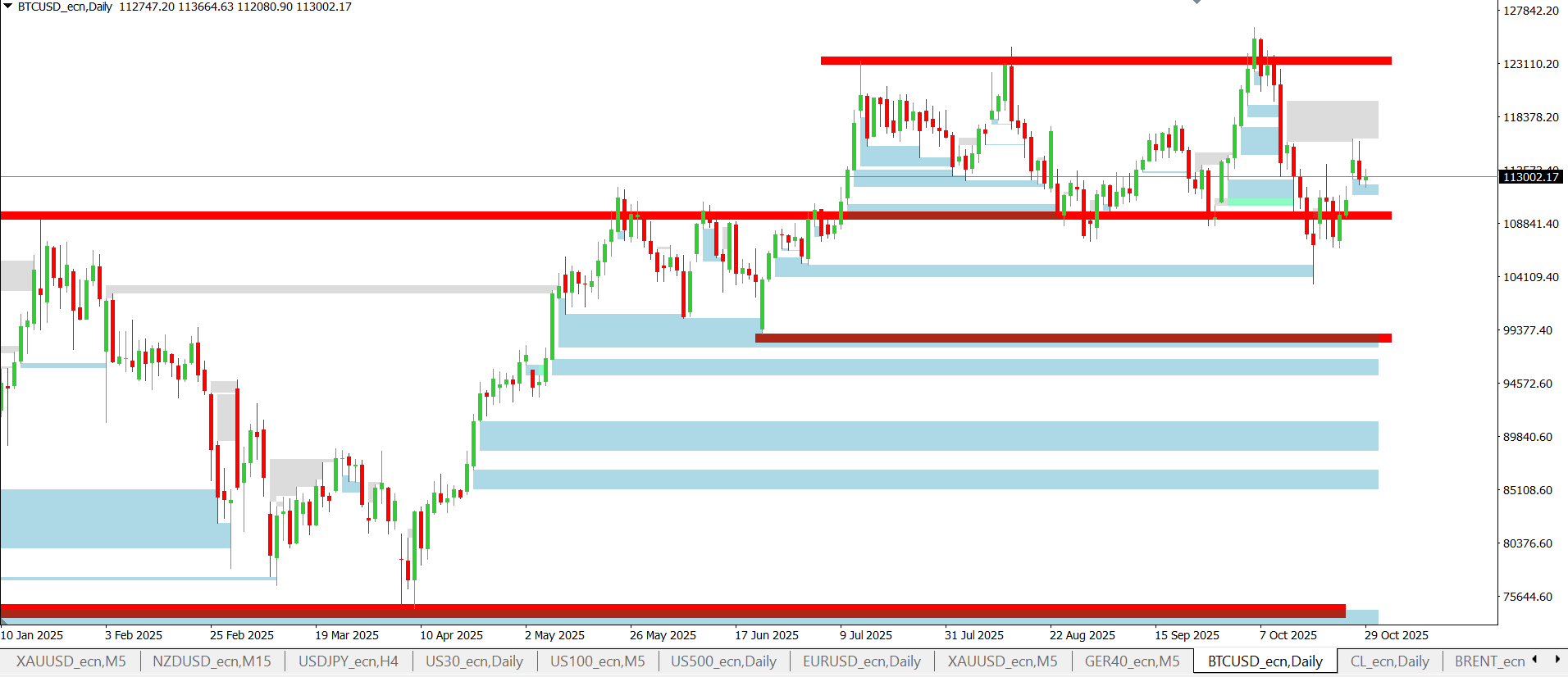 Bitcoin jsme zmínili v minulém článku, kde jsme naznačili možnost obratového býčího signálu po výběru likvidity pod hodnotou 109 000 USD. Zdá se, že se tento scénář začíná naplňovat.