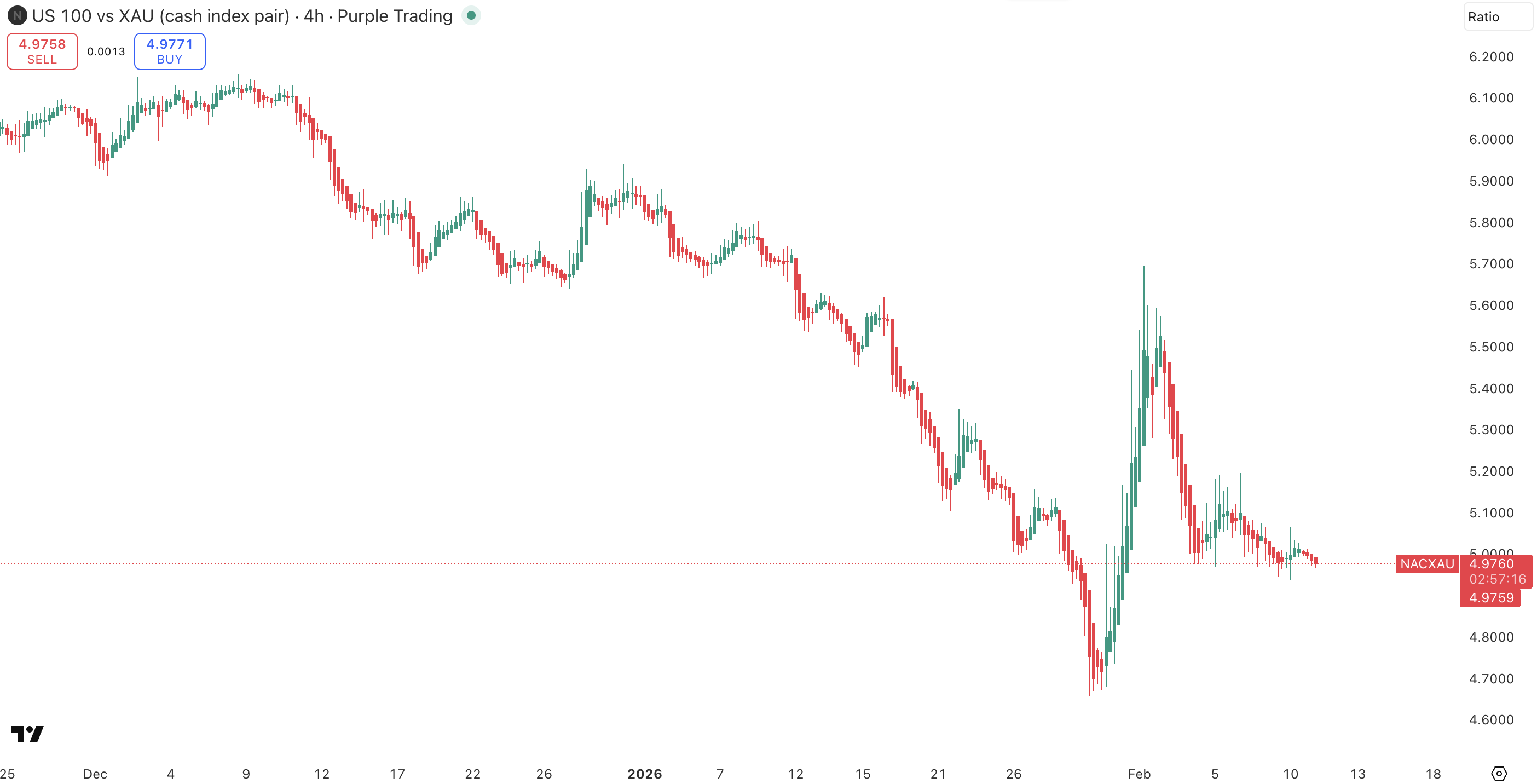 Například při obchodování instrumentu US 100 vs XAU:
