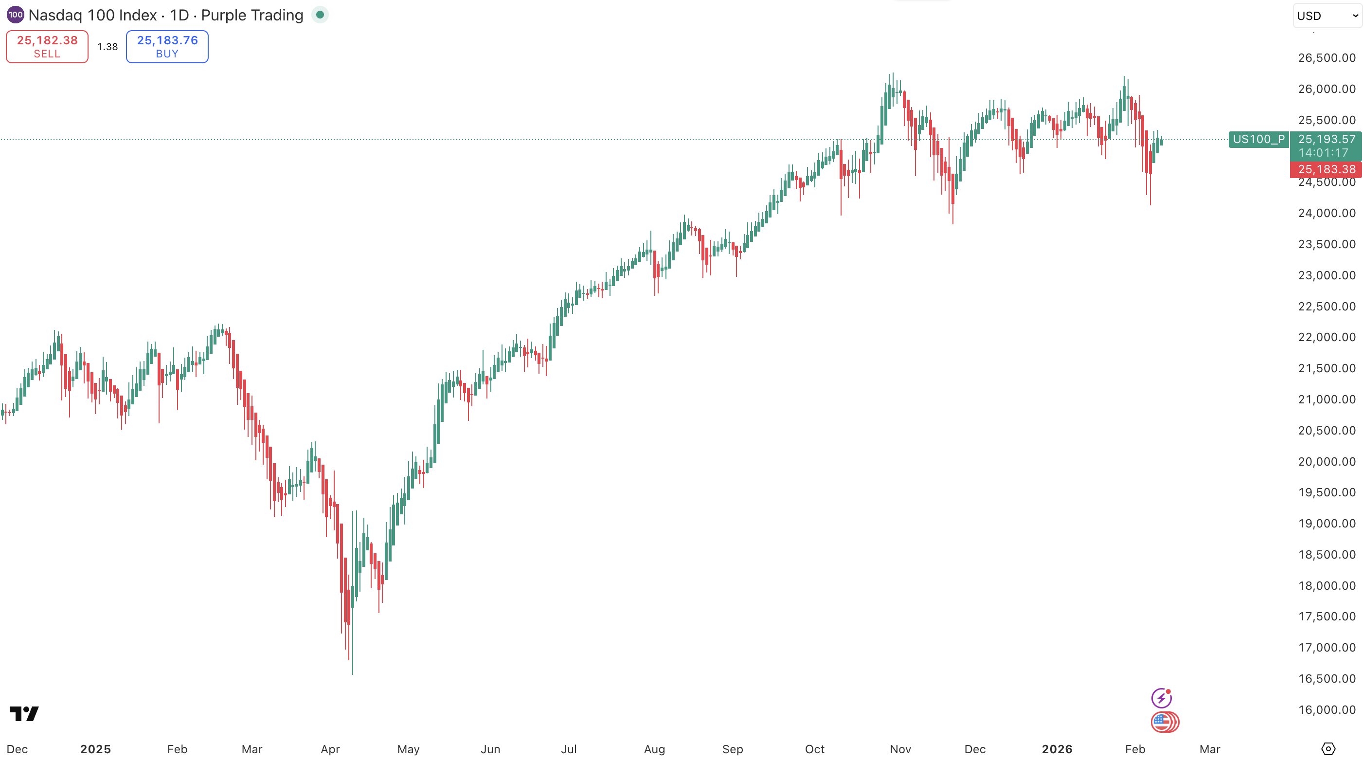 Akciový index Nasdaq 100, zdroj: TradingView